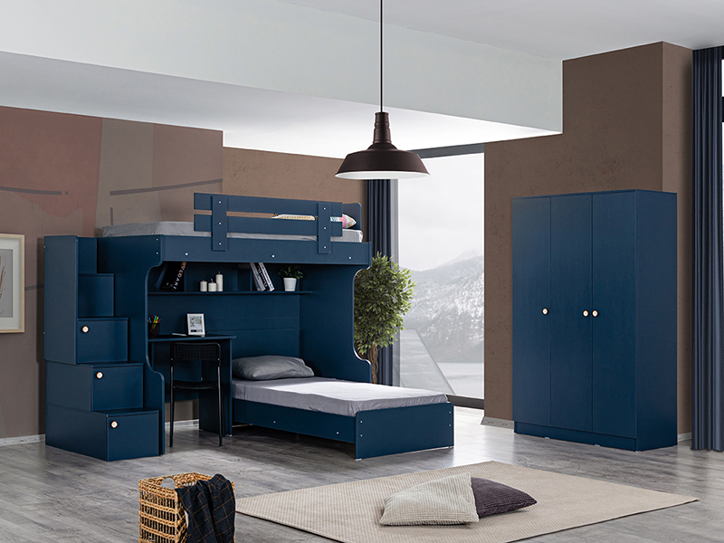 Dečija soba Blue AK pored funkcionalnosti,estetskih kriterijuma ima izuzetne ergonomske karakteristike za boravak dva deteta.