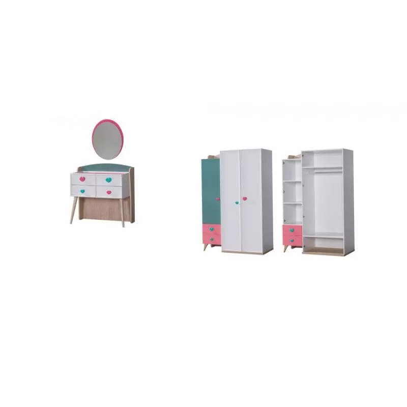 U prikazanu cenu ovog kompleta uračunati su garderober,krevet i noćni stočić kao osnovna varijanta,ali se svi elementi mogu i pojedinačno poručiti i kombinovati.