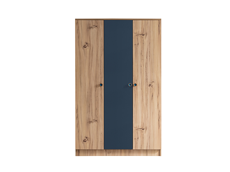 Izrađena je od visokokvalitetnog univera debljine 18 mm koji je obložen melaminskom folijom u dezenu drveta sa kombinacijom plave boje,što joj osigurava otpornost.