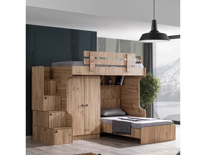 Sa dimenzijama dušeka od 90*190cm, krevet na sprat pruža udoban i siguran prostor za odmor, savršen za svakodnevnu upotrebu.