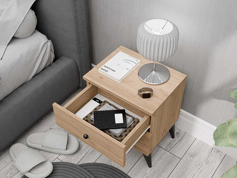 Noćni stočić Mona drvni dezen 2 fioke izrađen je od iverice 18 mm presvučene melaminskom folijom u drvnom dezenu,kant tanja abs traka.