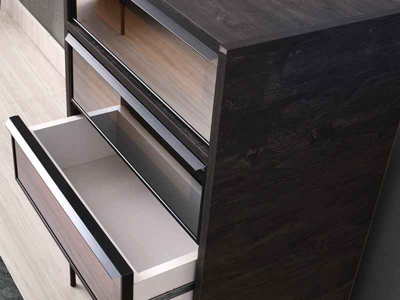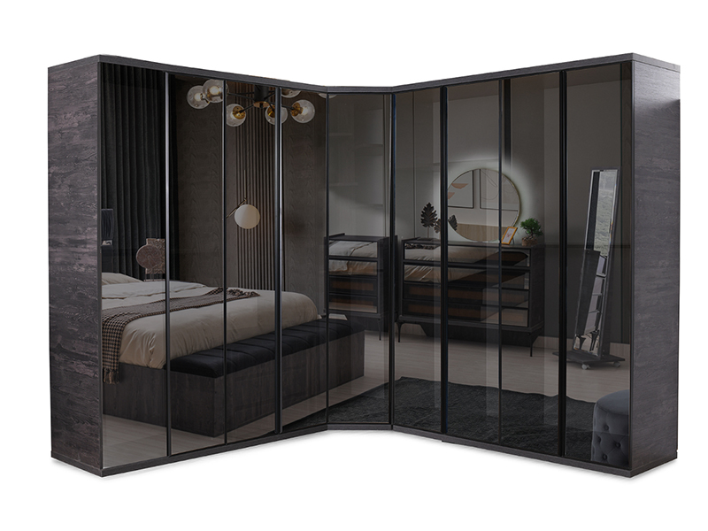 - ugaoni plakar sa aluminijumskim frontovima i zatamljenim staklom