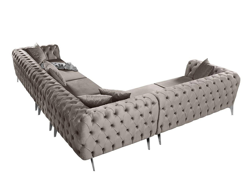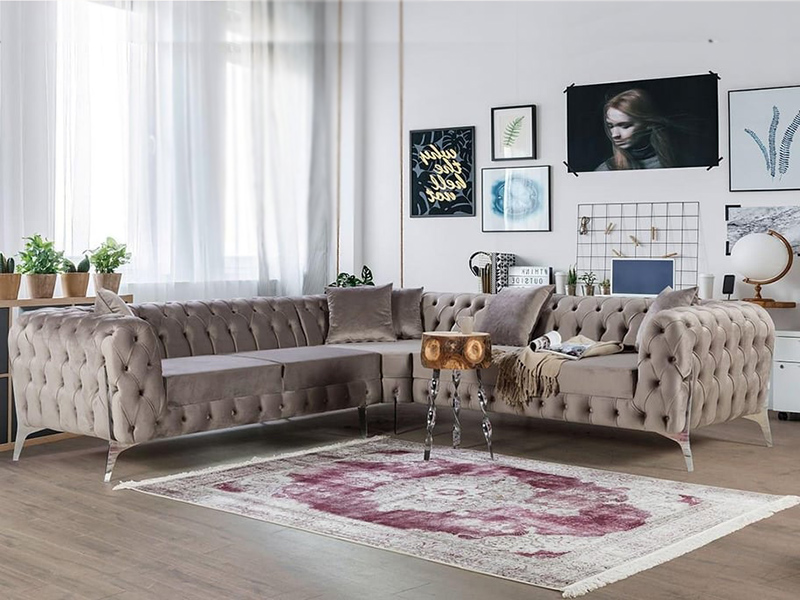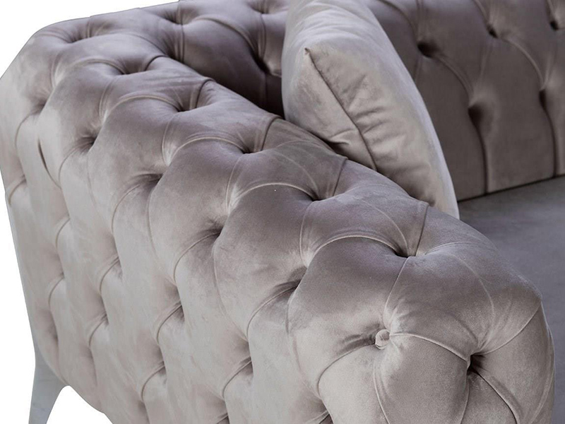 Dubina garniture je 90 cm,tapaciranje je elegantno sa dugmićima i dodatkom metalne galanterije.